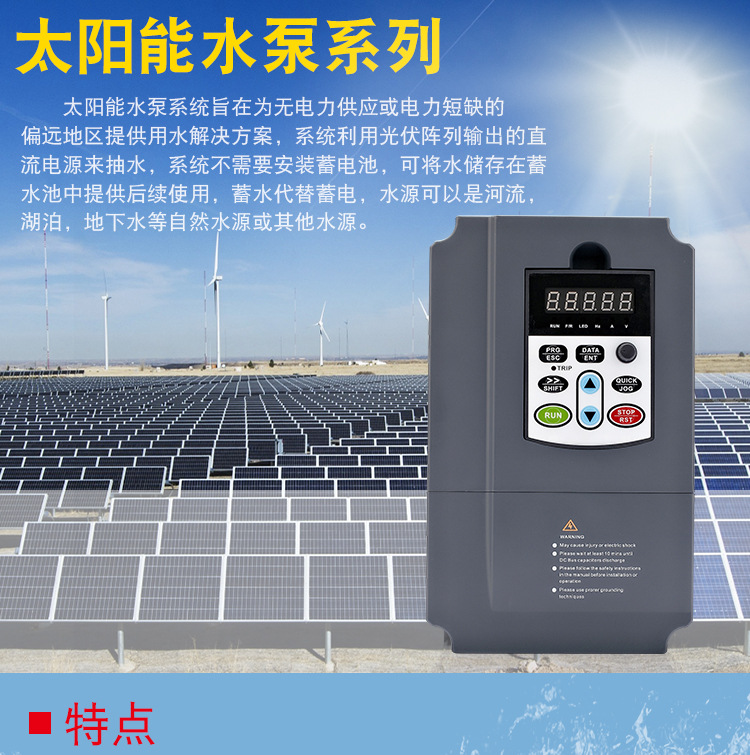 易用性好:只需將太陽(yáng)能板接入變頻器,通電后即可實(shí)現(xiàn)交流水泵自動(dòng)啟動(dòng)