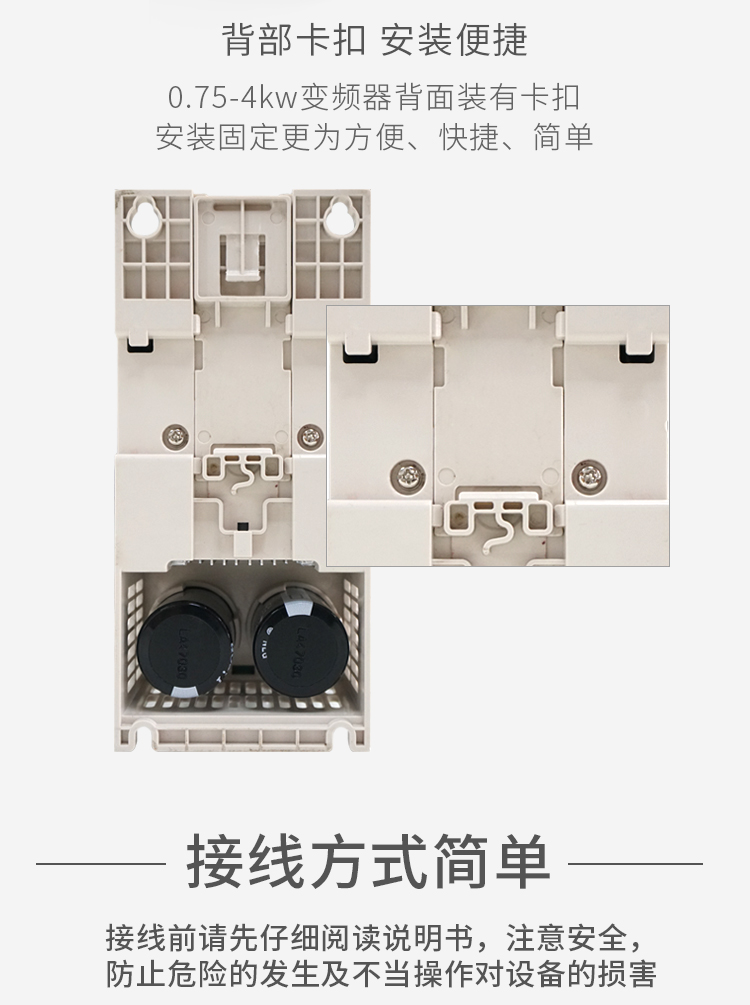 ⊙0.75KW~15kW各規(guī)格內(nèi)置制動單元,如需快速停車,可直接連接制動電阻;