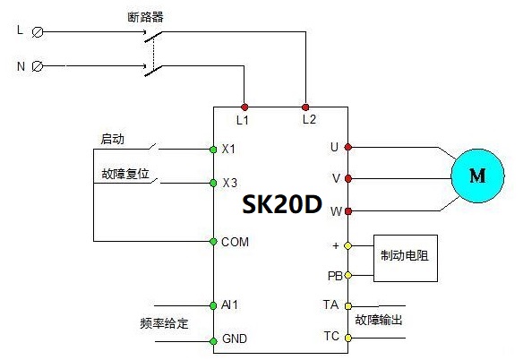 在客戶要求減速時間較短的場合,可根據(jù)需要選配接制動電阻,接入主回路端子的P+/PB之間。制動電阻功率可參考說明書附錄部分的機器功率等級選擇相匹配的型號。