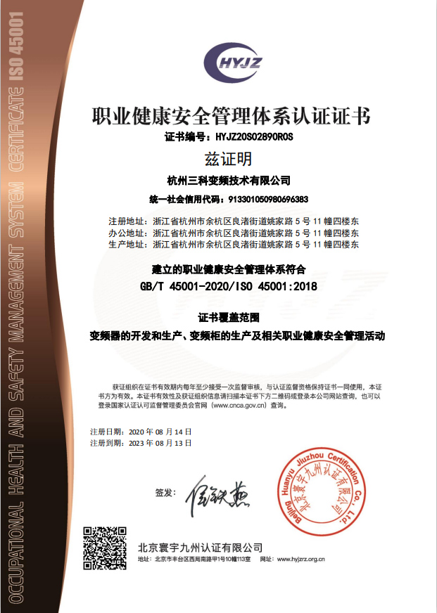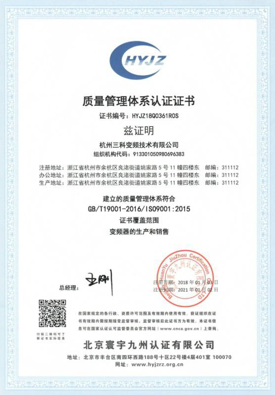 杭州三科變頻技術(shù)有限公司通過(guò)iso9001認(rèn)證