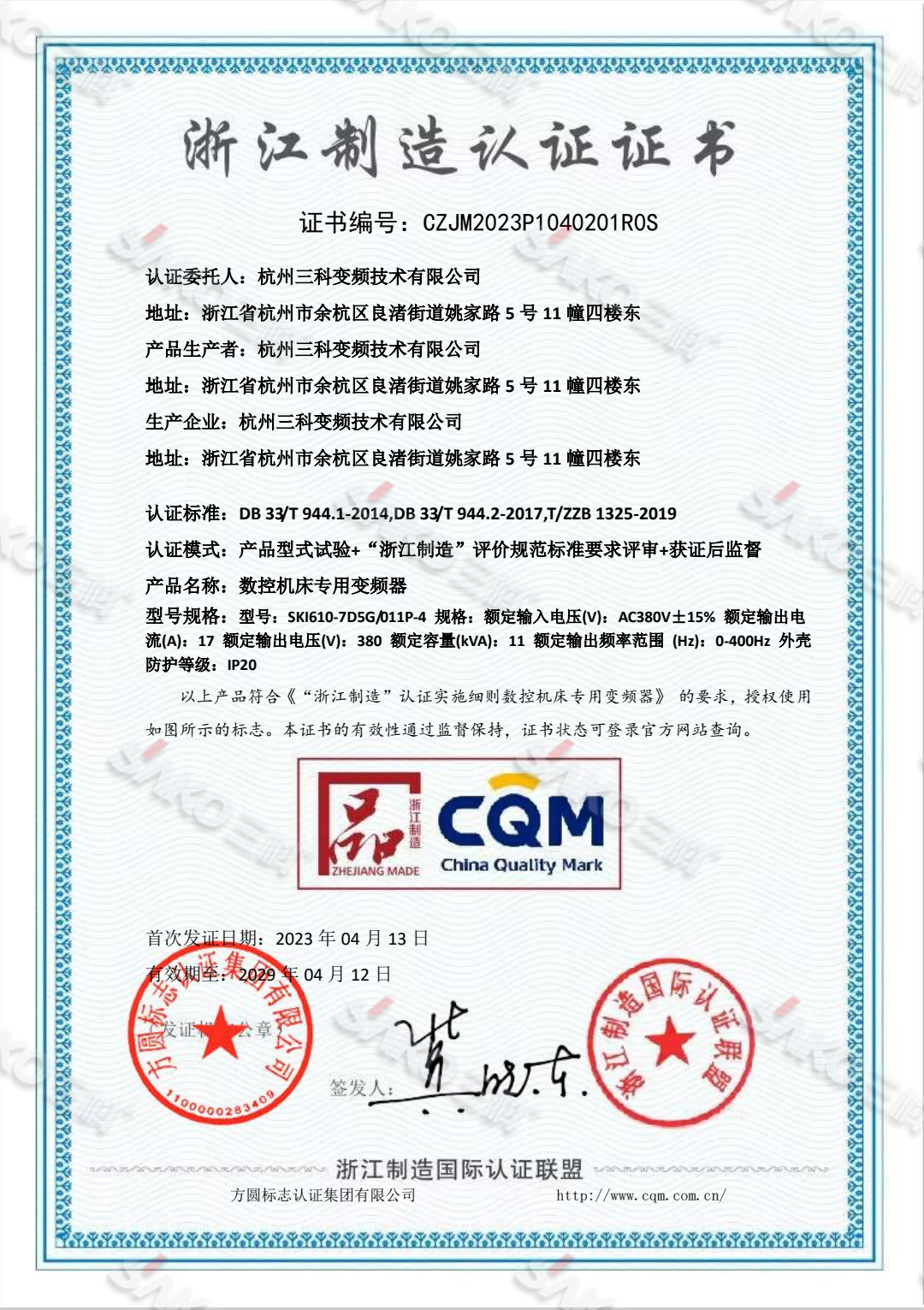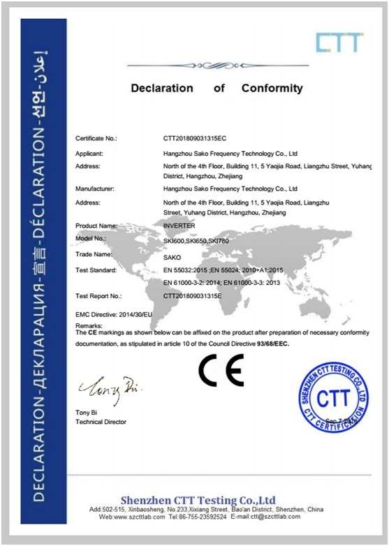 杭州三科變頻技術(shù)有限公司通過(guò)國(guó)際CE認(rèn)證