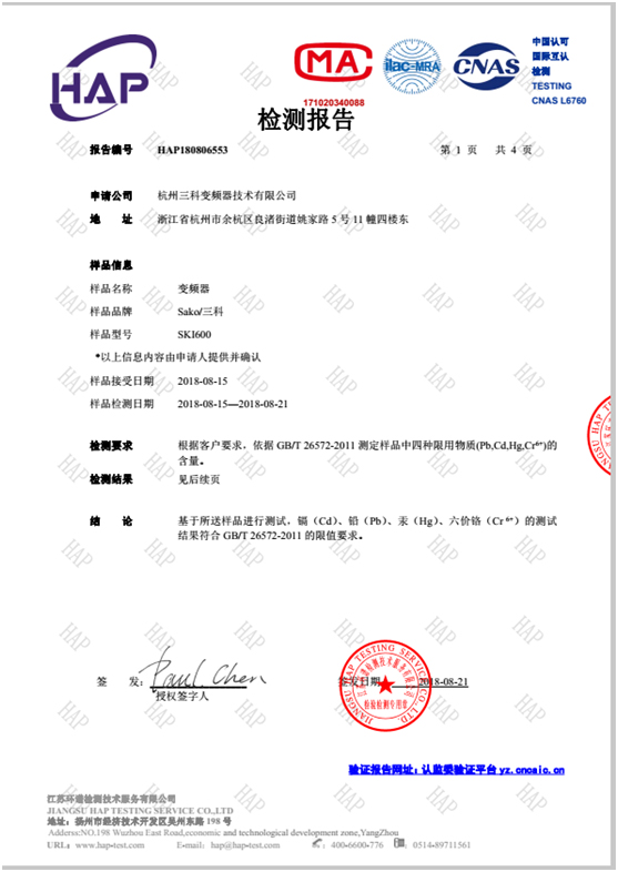 杭州三科變頻技術(shù)有限公司通過(guò)CNAS認(rèn)證