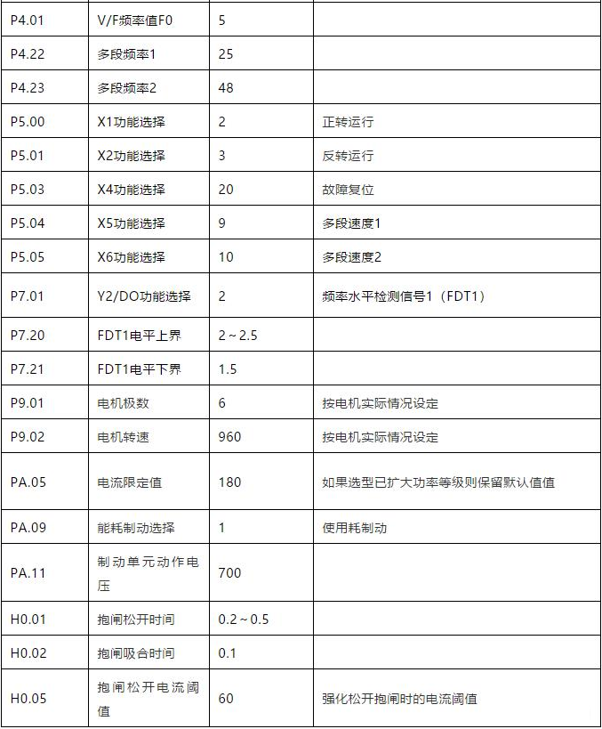 以下就是一臺龍門吊橋機(jī)在天津某現(xiàn)場的應(yīng)用調(diào)試參數(shù),這里以此為例將其列出并加以說明,請認(rèn)真閱讀參數(shù)說明。