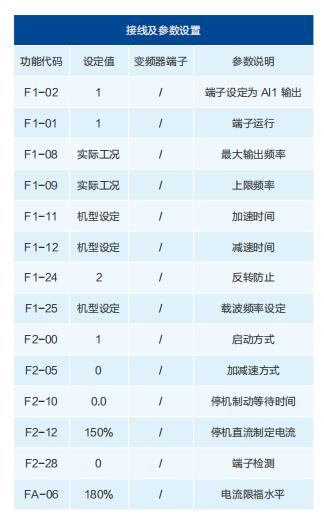 在大圓機(jī)運(yùn)轉(zhuǎn)中,絕對(duì)不能讓電機(jī)反轉(zhuǎn)以及回轉(zhuǎn)現(xiàn)象,否則針床的針將被折彎甚至斷針。有些大圓機(jī)接入單向軸承,可不予考慮。要是系統(tǒng)正反轉(zhuǎn)完全取決于電機(jī)的正反轉(zhuǎn)控制,則需要設(shè)置合理的參數(shù),一方面要設(shè)置禁止反轉(zhuǎn)功能,另外一方面需要直流制動(dòng)功能。還要注意不能出現(xiàn)失速現(xiàn)象,以免造成斷針等損失。本方案采用模擬量輸入給定頻率。線路簡(jiǎn)單(省略)大圓機(jī)要求起動(dòng)時(shí)響應(yīng)要快,低頻大轉(zhuǎn)矩輸出;停機(jī)時(shí)要光滑、柔和一些,以保護(hù)針床。因此合理設(shè)置上表參數(shù)是充分發(fā)揮圓機(jī)性能的保證,原則是通過調(diào)節(jié)F1-13參數(shù)得到最佳的低頻轉(zhuǎn)矩輸出能力以及降低圓機(jī)高速運(yùn)行的振動(dòng),通過調(diào)起停控制(F2組)以及加減速度時(shí)間參數(shù)(F1組)得到頻率調(diào)節(jié)的光滑性。
