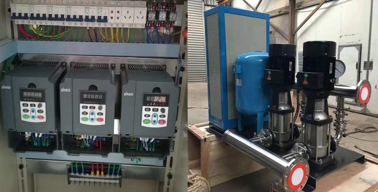 在SKI600水泵變頻器輸出頻率低于其休眠閾值的最低工作頻率(下界)時,停止工作,并在水壓降至一定范圍后,自動重新啟動電機(jī)運行。