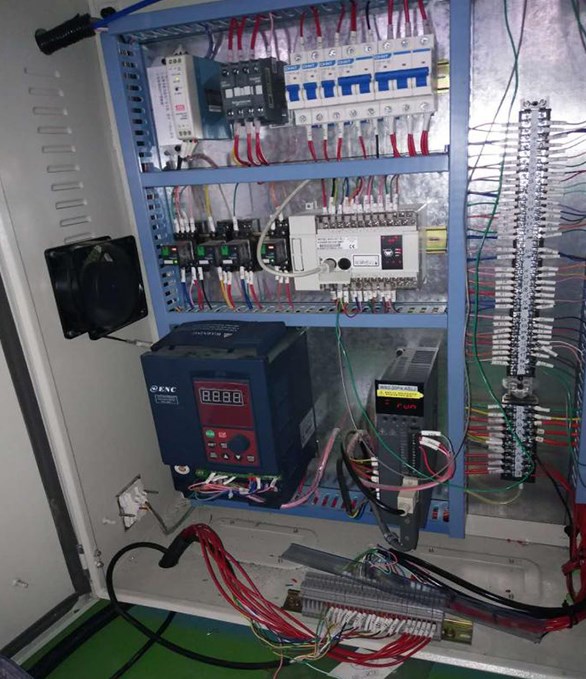 (3)當(dāng)把變頻設(shè)備和PLC安裝于同一操作柜中時,應(yīng)盡可能使與變頻設(shè)備有關(guān)的電線和與PLC有關(guān)的電線分開。