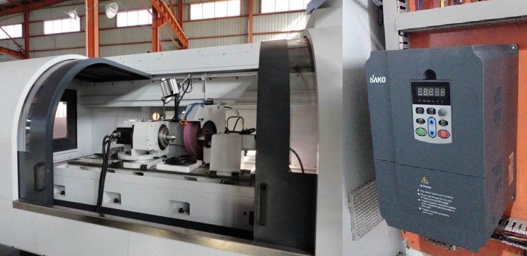 根據(jù)不同的軸桿類(lèi)直徑的大小,主砂輪電機(jī)的轉(zhuǎn)速等于砂輪輸出的轉(zhuǎn)速。磨削力的大小取決于砂輪電機(jī)的輸出轉(zhuǎn)矩。在驅(qū)動(dòng)工件旋轉(zhuǎn)的主軸電機(jī)的高速段,相對(duì)于砂輪輸出轉(zhuǎn)速不變,所加工的工件直徑小,磨削進(jìn)給少;加工大直徑,長(zhǎng)軸類(lèi)工件時(shí),工件旋轉(zhuǎn)的電機(jī)在低速段,砂輪進(jìn)給量大,砂輪磨削力也在變大,電機(jī)很難在恒轉(zhuǎn)矩/恒速度下運(yùn)行。速度的變化就產(chǎn)生了如振刀紋/燒糊紋/加工精度等的變化。變頻調(diào)速電機(jī)的無(wú)級(jí)調(diào)速,恒轉(zhuǎn)矩輸出恰能彌補(bǔ)上述缺陷。